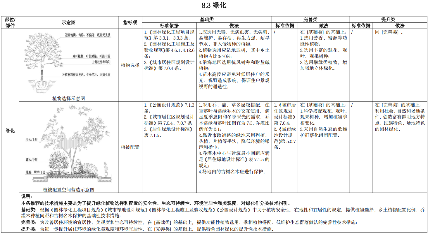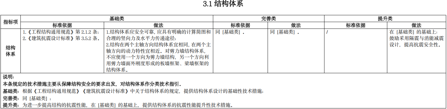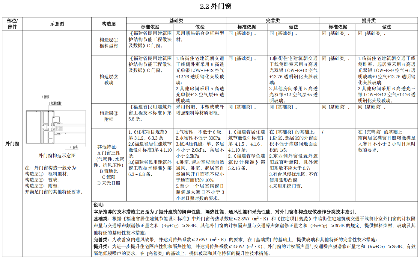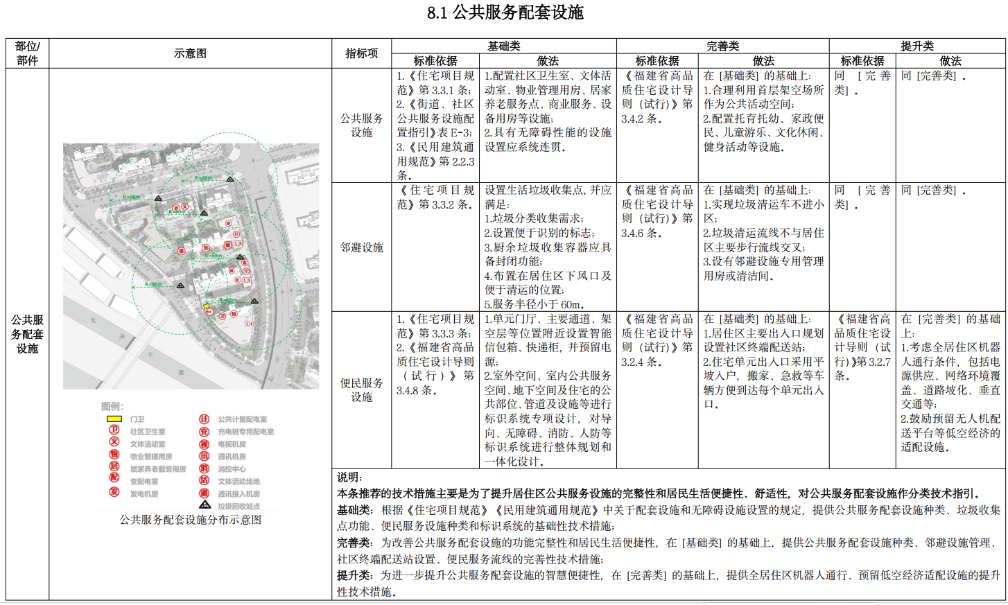 按照住宅设计品质要求分为 “基础类”“完善类”和 “提升类”技术 内容 。其 中 “基础类”为保障住宅 “好房子”品质的基础性技术措施;“完善类”为改善住宅 “好房子”功能