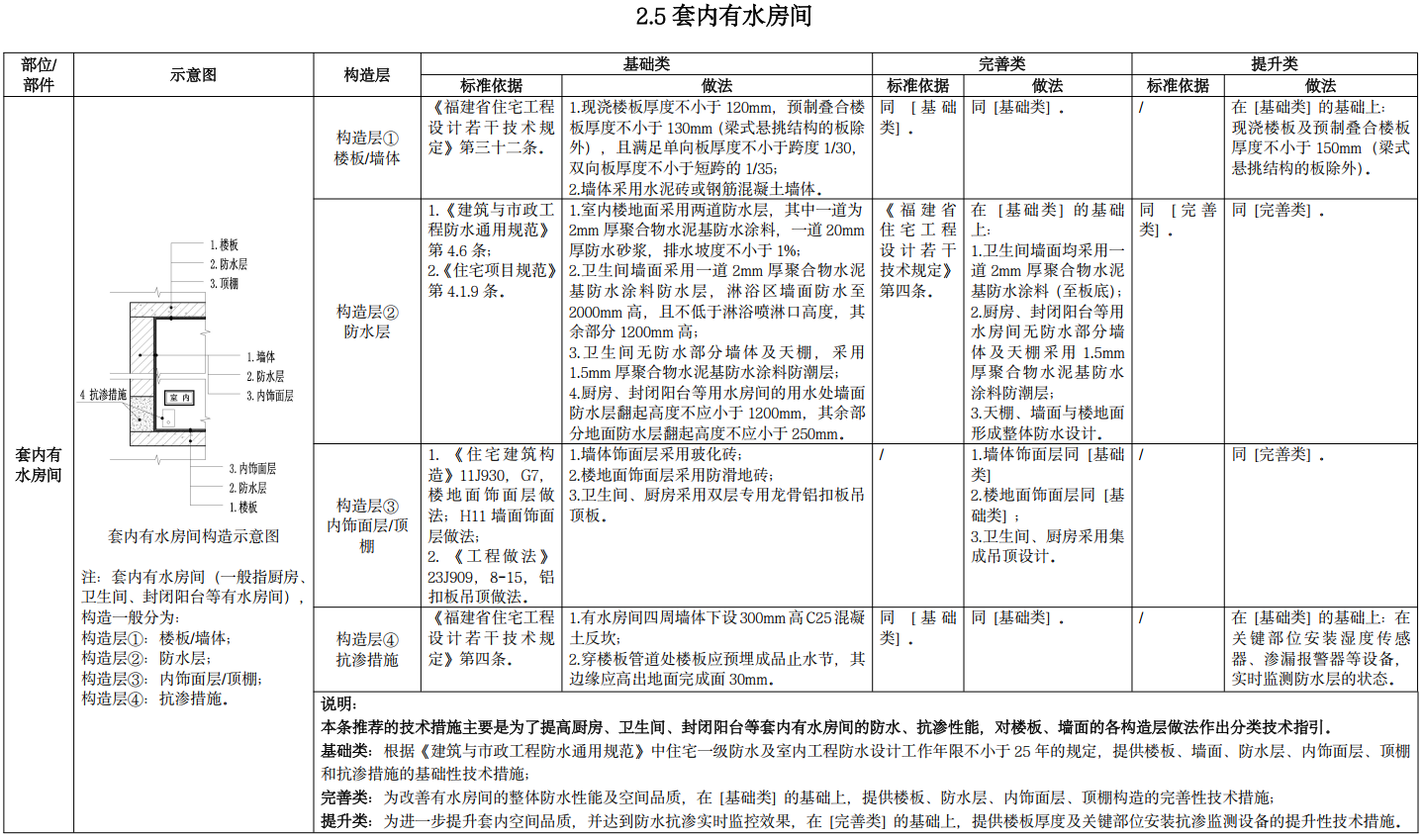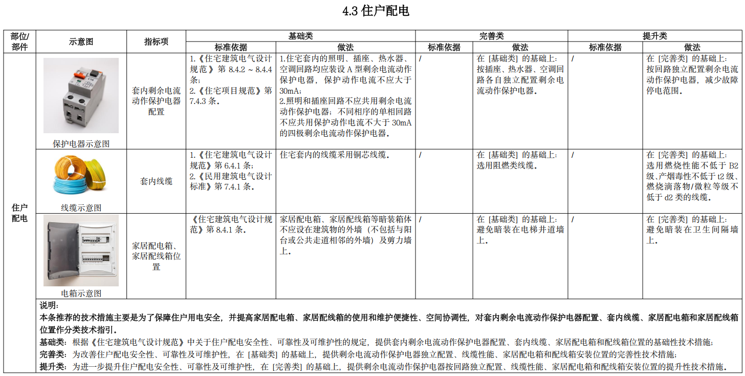 的完善性技术措施;“提升类”为提高住宅 “好房子”性能的提升性技术措施 。
