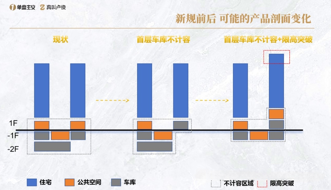 加上这次新规对建筑高度的放宽,50米以下的建筑可拔高7米,50米以上的最多能增加11米。意思就是,多了整整两层空间,开发商能够从容打造两层通高、明亮通透的“阳光车库”,而且立体的社区氛围是现在的产品根本没法比的。