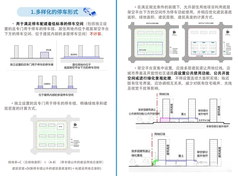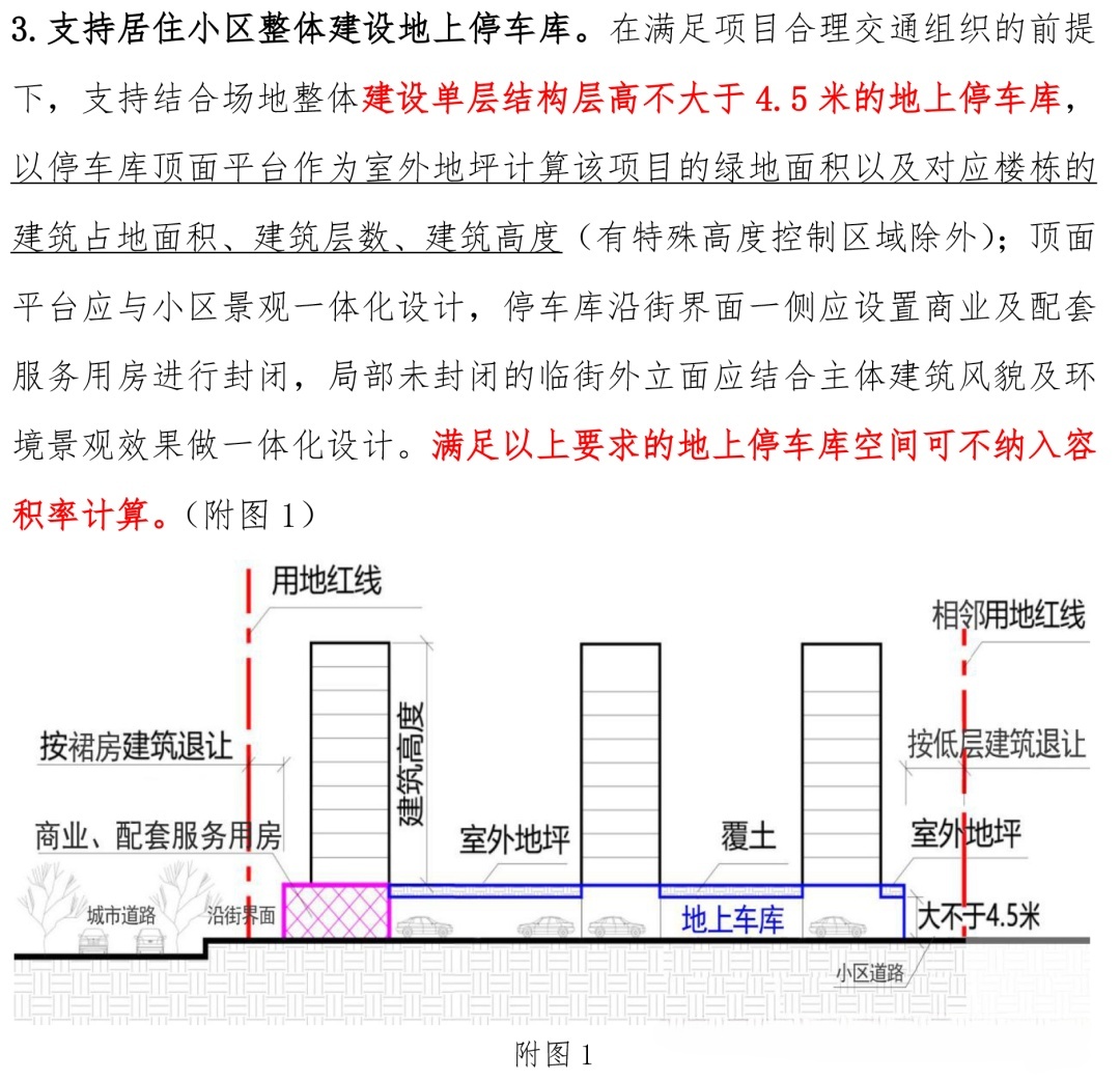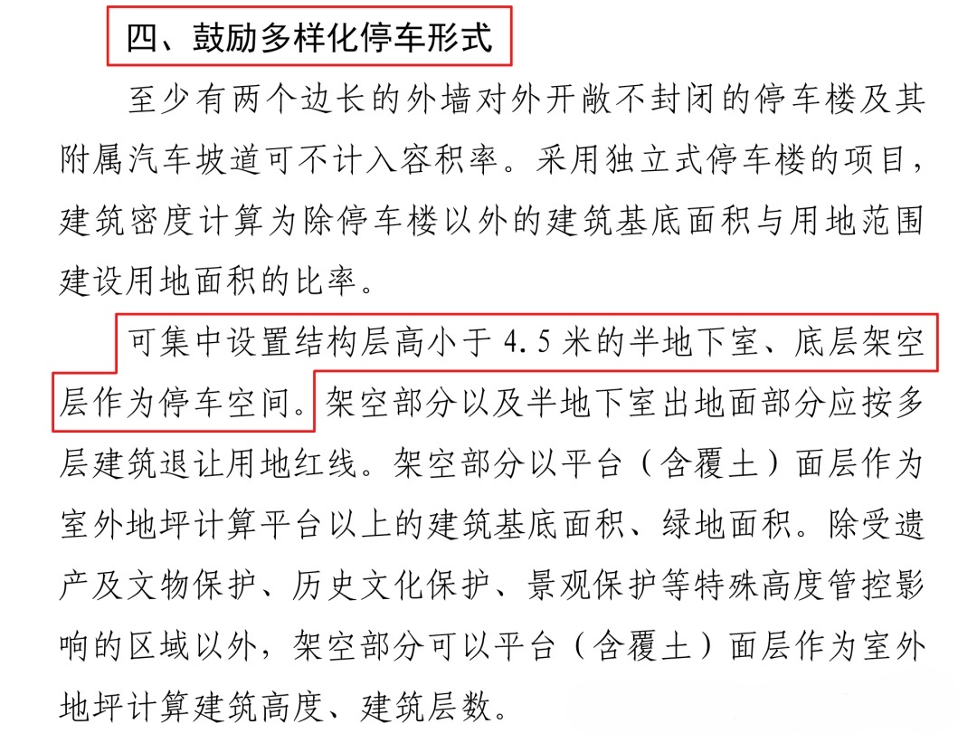 2024年12月,杭州印发《关于优化建设项目容积率及相关指标计算规则的通知》,明确居住用地底层架空平台下的停车空间,不计入容积率。