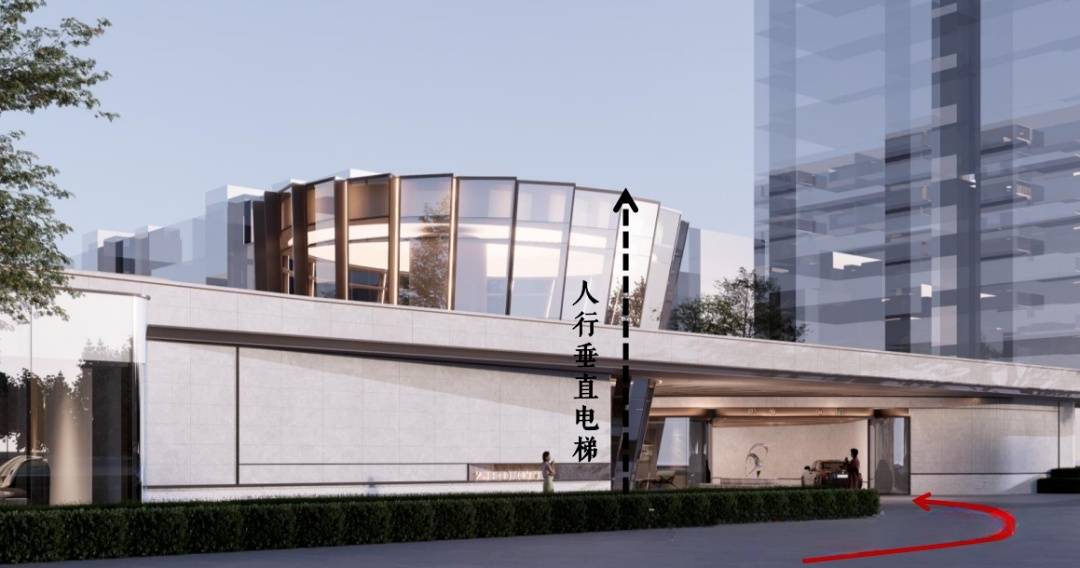 再看杭州保利·天奕,它采用“全域抬板”设计,整体抬升5.4米,再用配套裙房围合起来。加上约4米高的架空层,一楼实际相当于普通项目的四楼,仿佛一个“天空之城”。