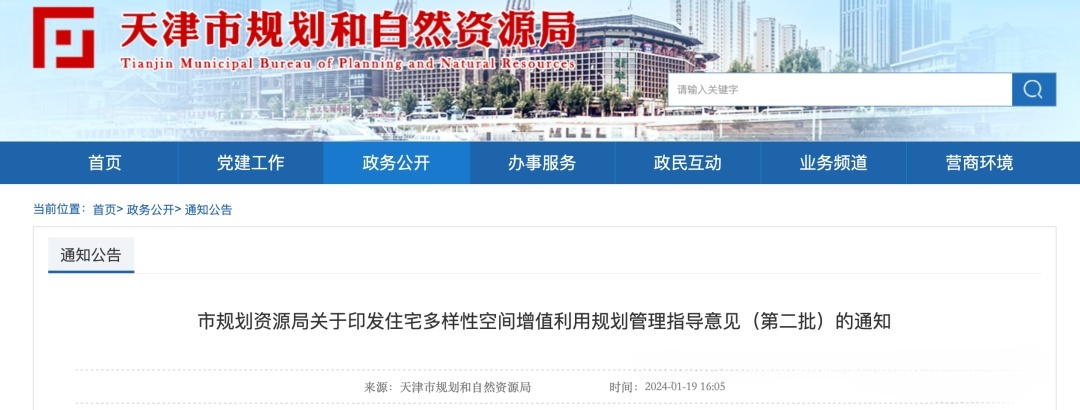 2024年1月,天津市规划和自然资源局发布的《市规划资源局关于住宅多样性空间增值利用规划管理的指导意见(第二批)》,明确鼓励居住项目采用多样化的停车形式、鼓励住宅首层空间多样化利用等,这促使开发商积极设计建设架空车库住宅,推动了创新住宅在天津的发展。