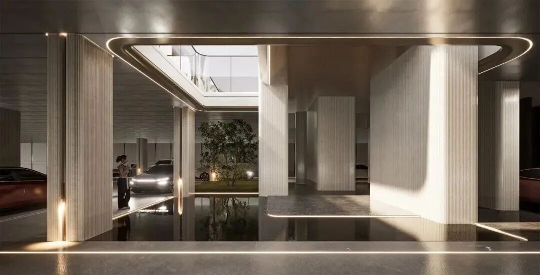 抬板层形成“高于外部道路1.5 米”的私密界面,彻底隔绝噪音视线干扰。打造上海迄今为止采光量最大的“阳光地库”,拥有楼栋专属下沉花园与采光中庭。