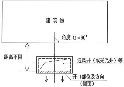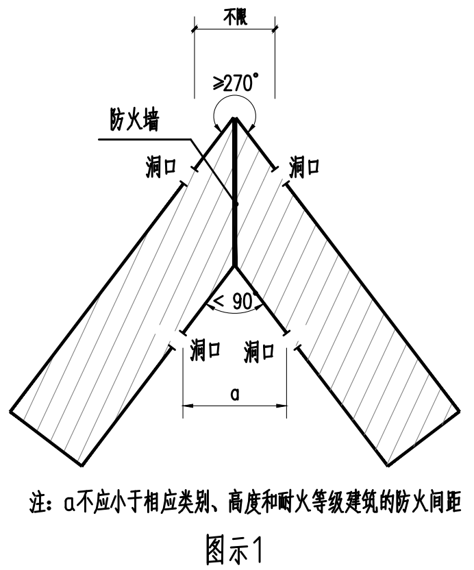 5、两座相邻建筑形成夹角大于等于270度时,紧靠防火墙两侧的门、窗、洞口之间的距离不限;