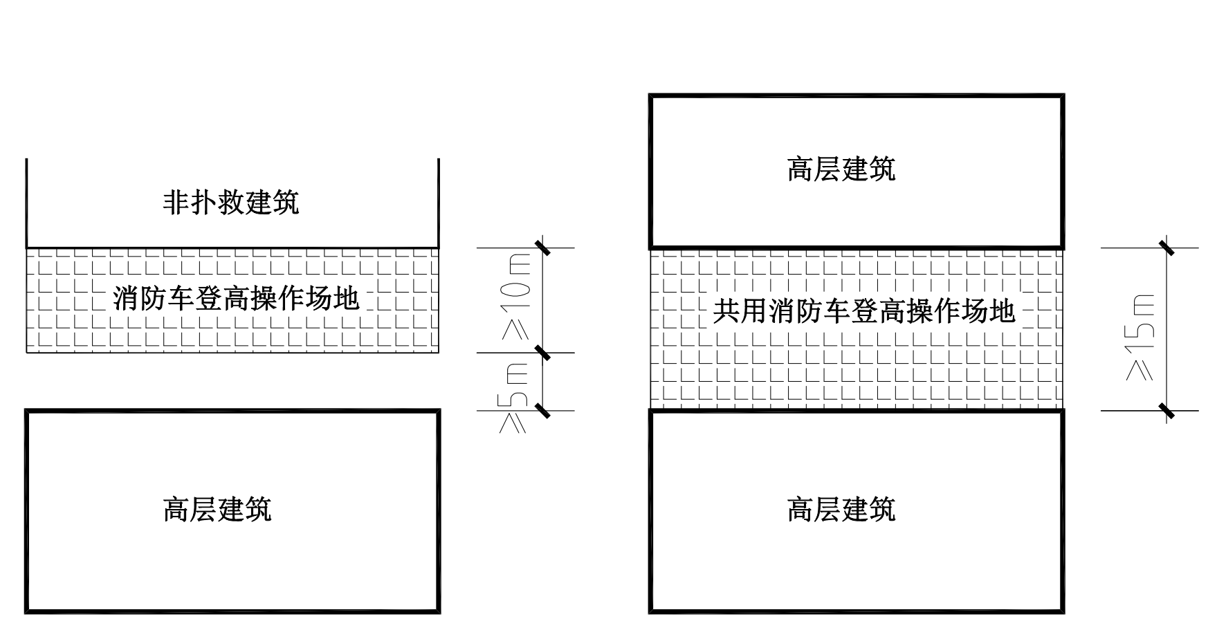 2.1.2 当相邻两座建筑之间通过设置防火墙以满足防火间距不限或减少的条件时,应符合下列规定(图示1,2):