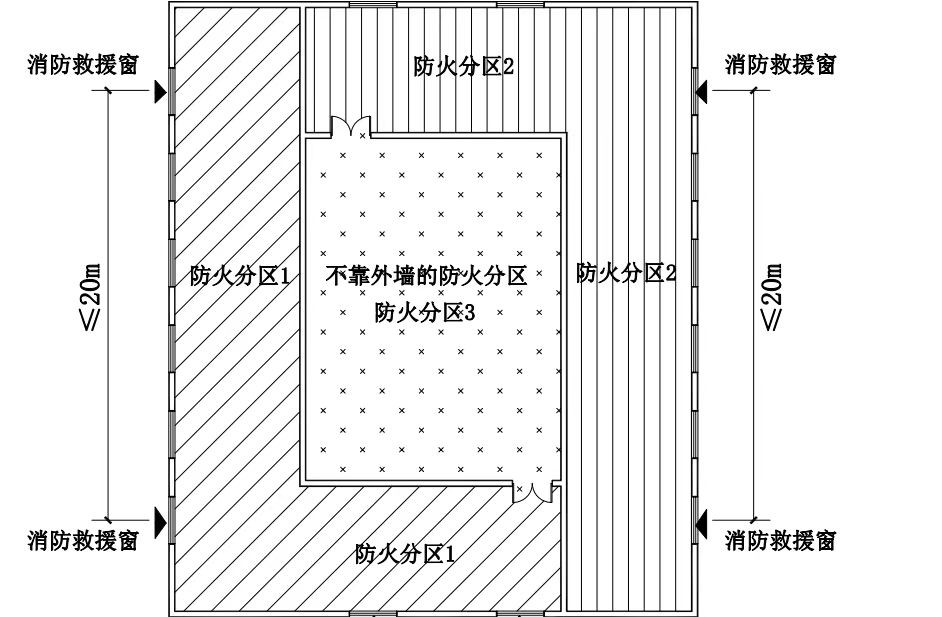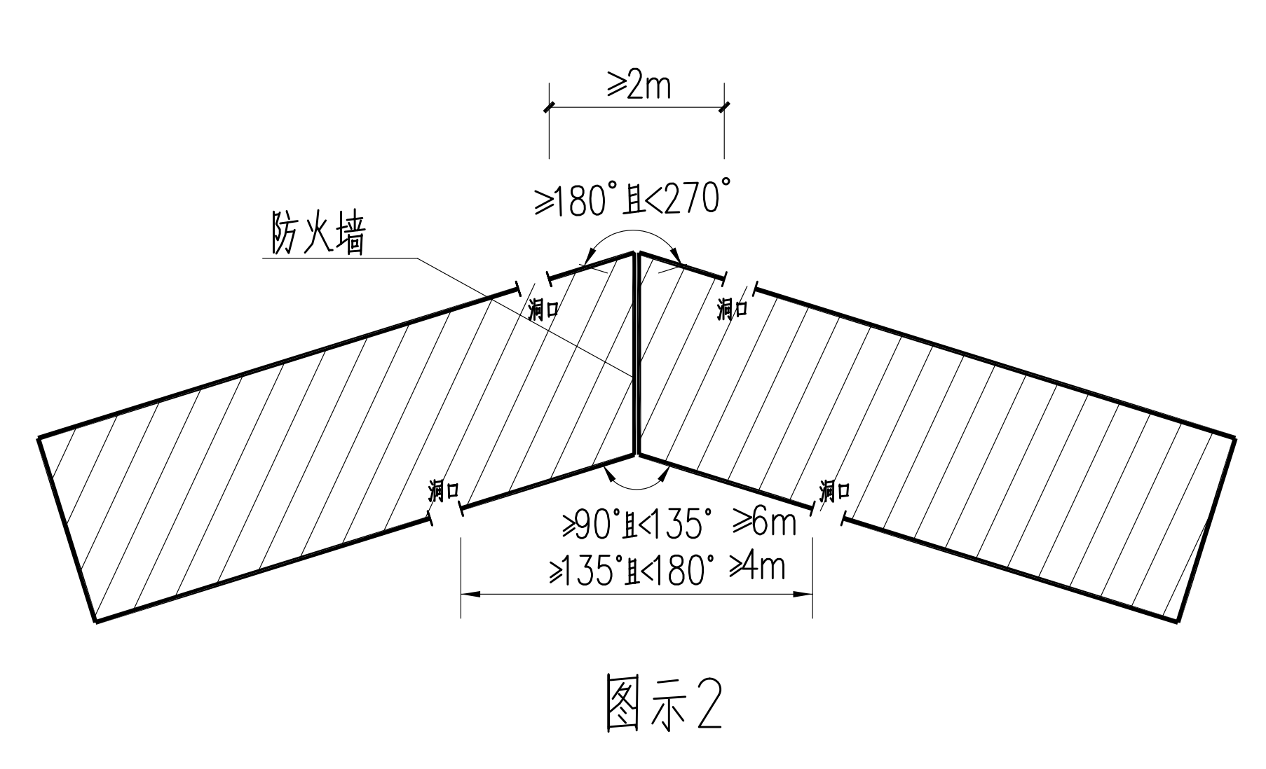 1、两座相邻建筑形成夹角小于90度时,最近门窗洞口之间的水平距离不应小于相应类别、高度和耐火等级建筑的防火间距;